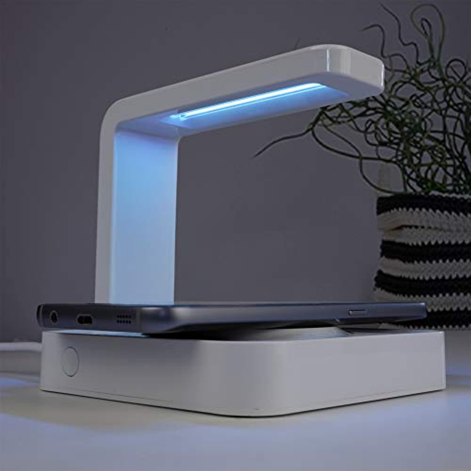 UV Light products work by utilizing short wavelength ultraviolet light to damage germ DNA, preventing them from being able to function or reproduce. This technology has been around for over 100 years and is commonly used in professional laboratories and medical facilities to disinfect surfaces and equipment. The UV Light Disinfectant Germicidal Charging Station offers UV sterilization for those germ-carrying cell phones while charging your mobile device. Disinfects in only 5 minutes!