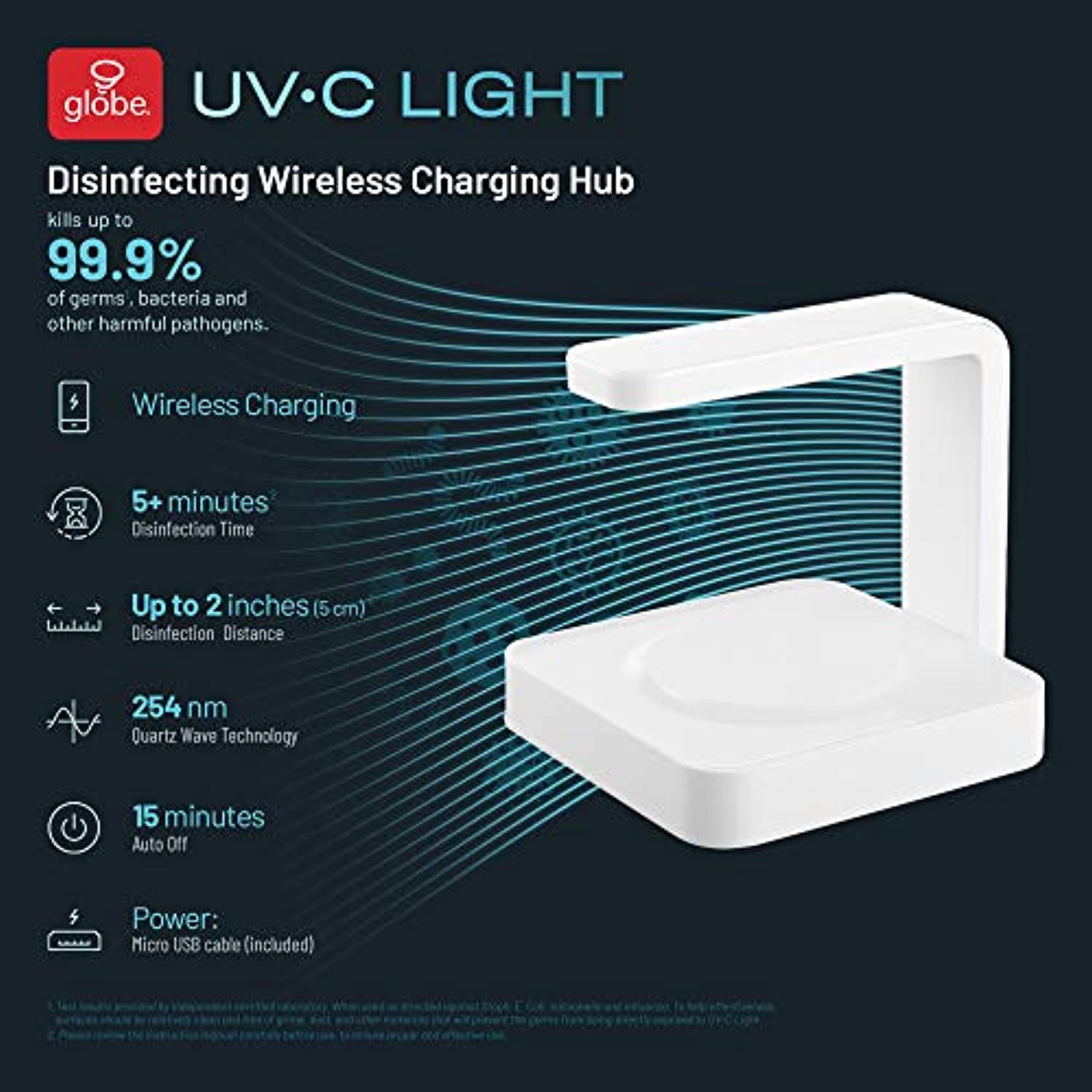 Globe Electric UV-C Light Disinfecting Mobile Wireless Charger 60055