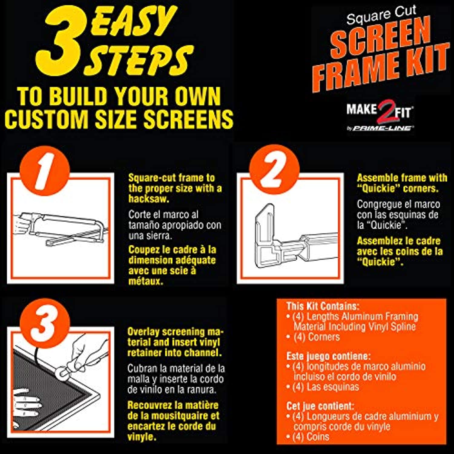 - This kit allows for the construction of one 60 in. x 60 in, window screen, or any smaller size using the components of this kit