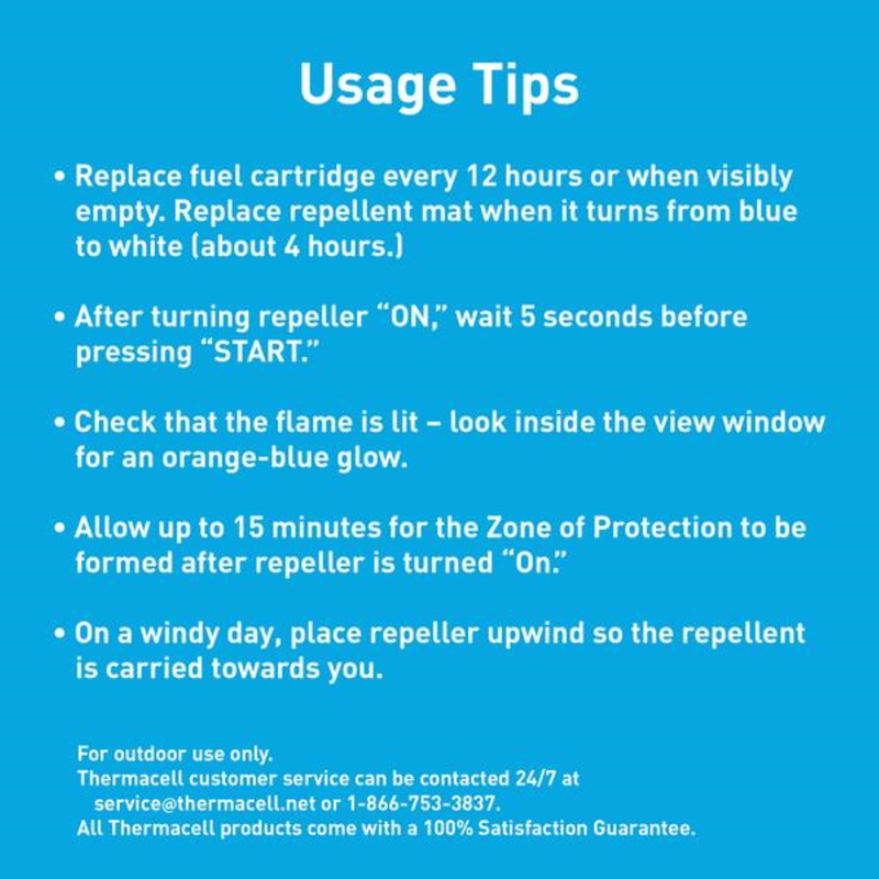 - WHAT’S INCLUDED: 1 Fuel Cartridge and 3 repellent mats.